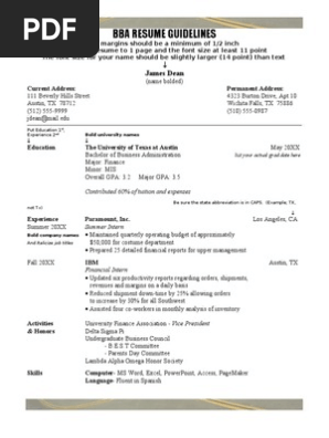 Bba Sample Resume With Directions Business Personal Growth