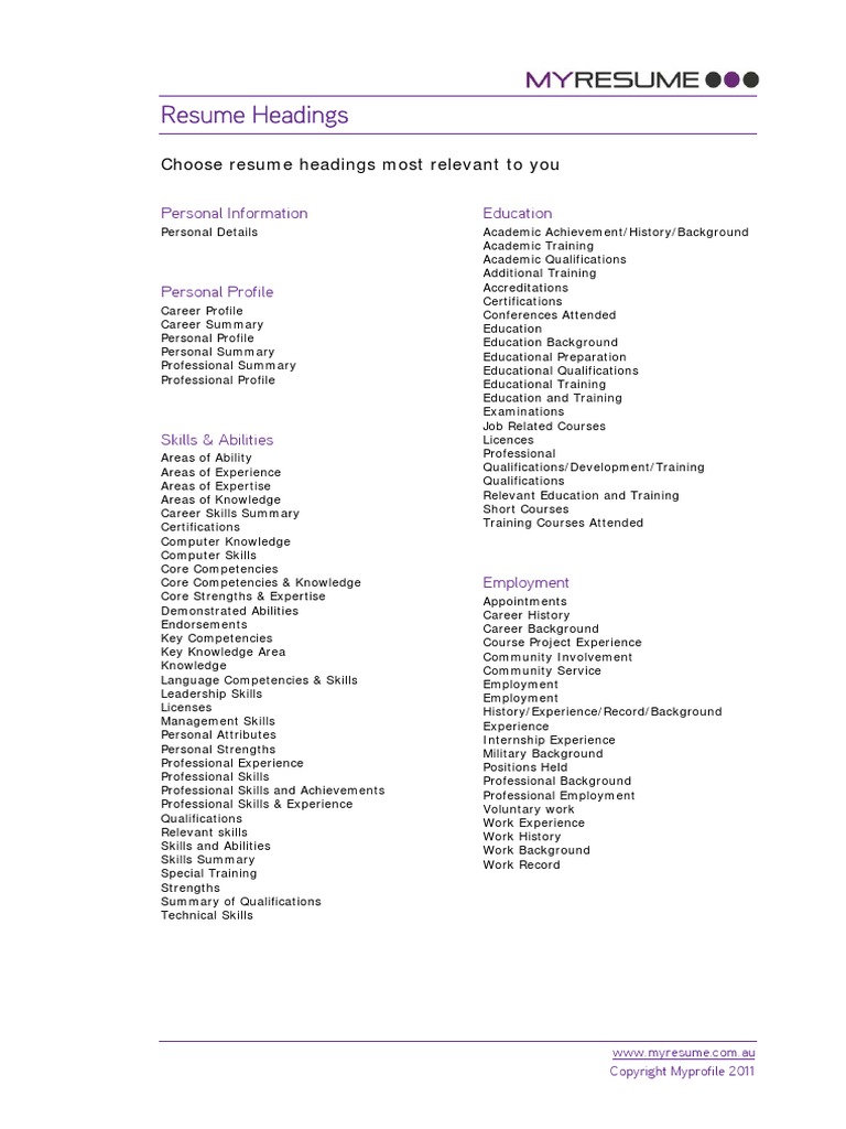 Resume Headings This Is Not One Of The Recommended Resume Headings Resume Headings Online Resume Generator Free Lets Make A Summary Lta Hrefquothttpresume Sample