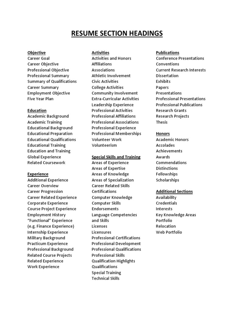 Guide To Resume Sections Categories Titles And Headings Career Sidekick