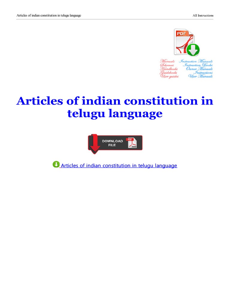 Articles Of Indian Constitution In Telugu Language Languages Of