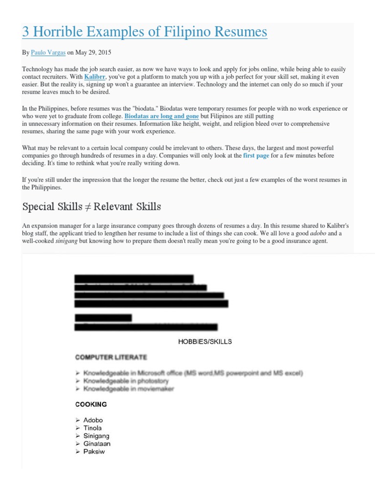 3 Horrible Examples Of Filipino Resumes Special Skills