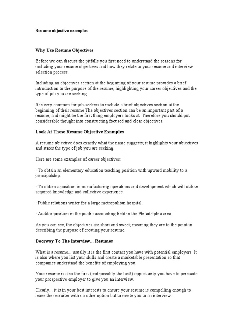 Sample Career Objectives Examples For Resumes