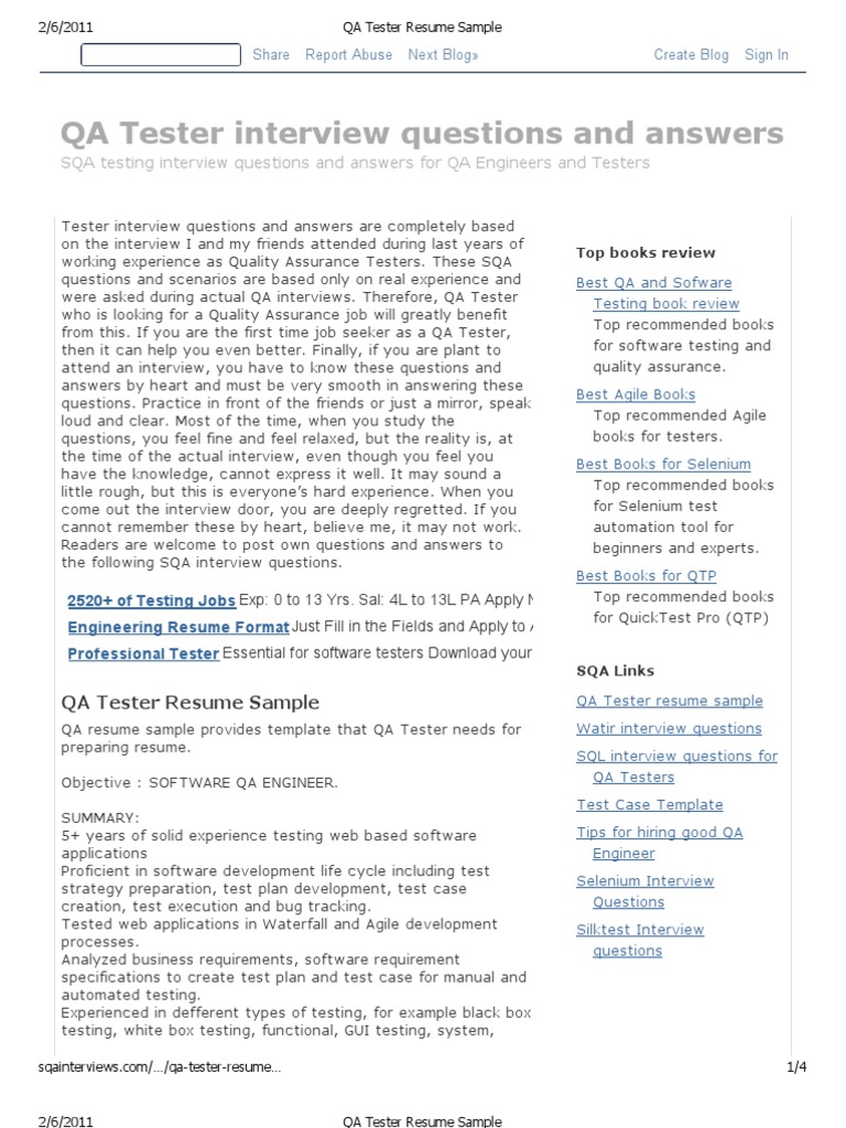 Sample Resume For Qa Tester Job Sample Template