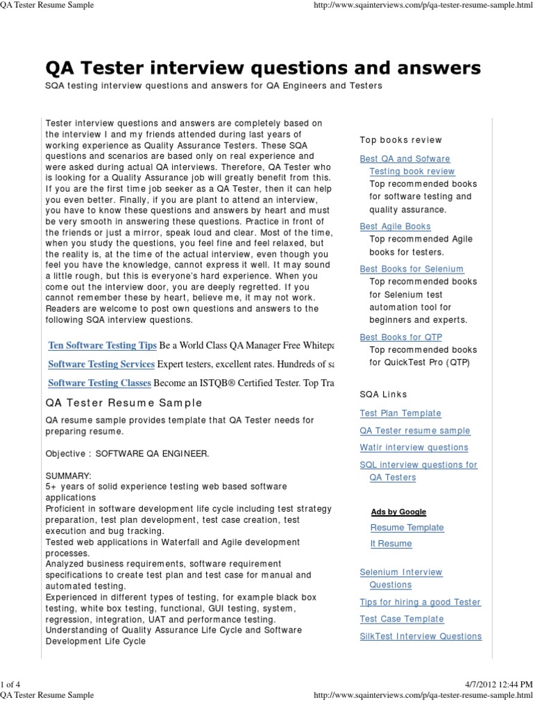 Qa Tester Resume Template