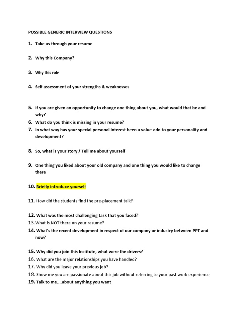 Interview Questions For Freshers Tell Me About Yourself For Fresher