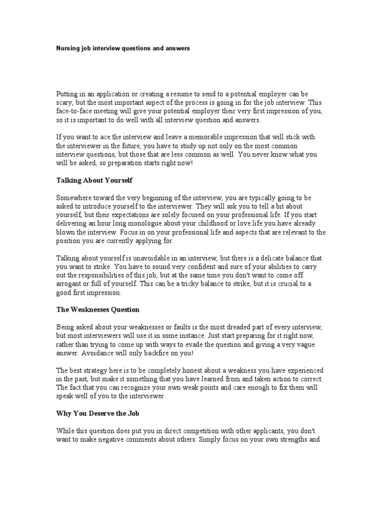 Nursing Job Interview Questions And Answers Job Interview