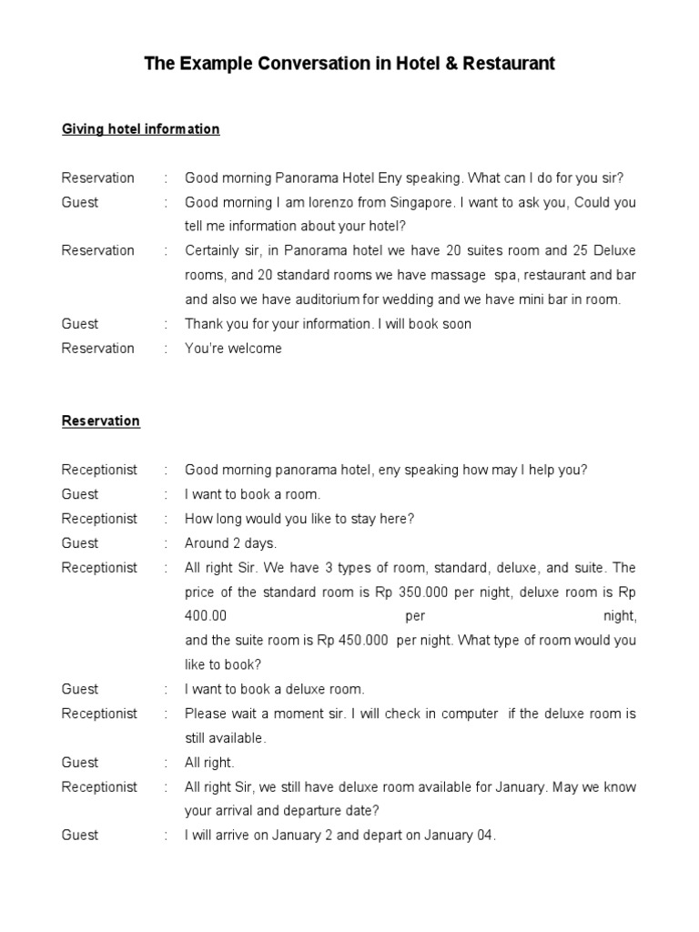 The Example Conversation In Hotel Restaurant Hospitality Industry Buildings And Structures Free 30 Day Trial Scribd