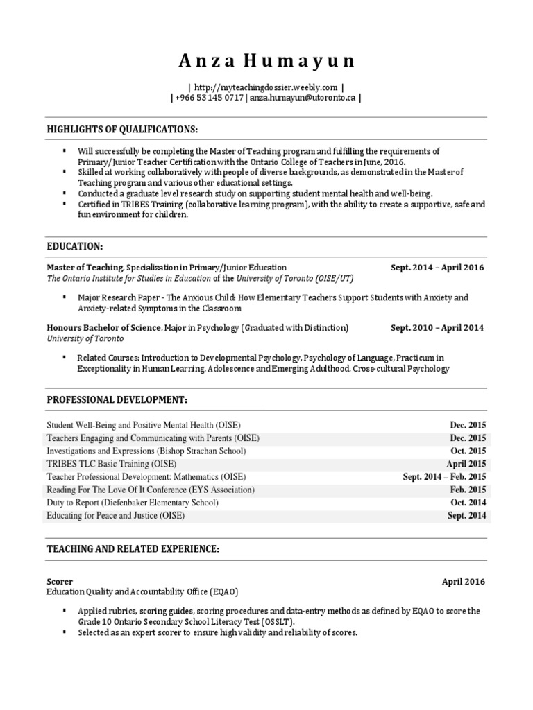 Sample Curriculum Vitae For Teacher Job Teacher Resume Example