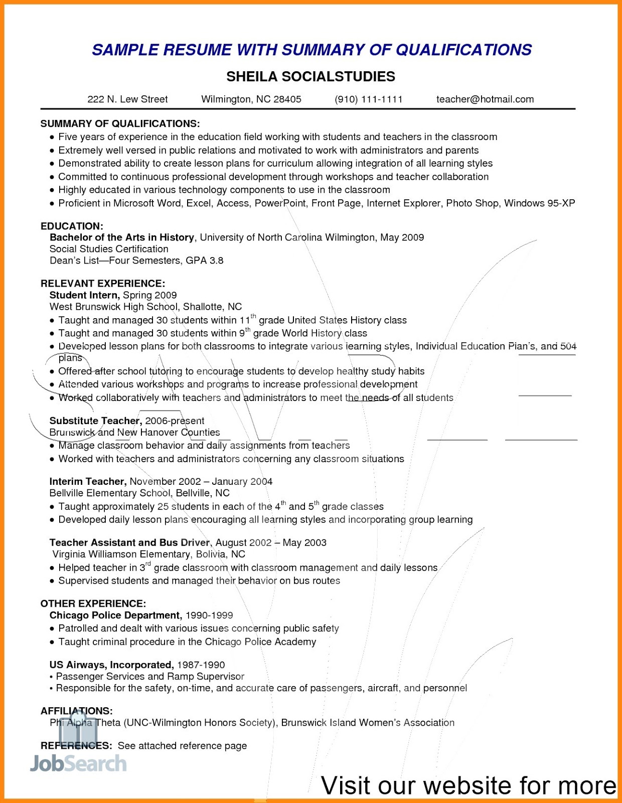 Sample Of A Resume Summary