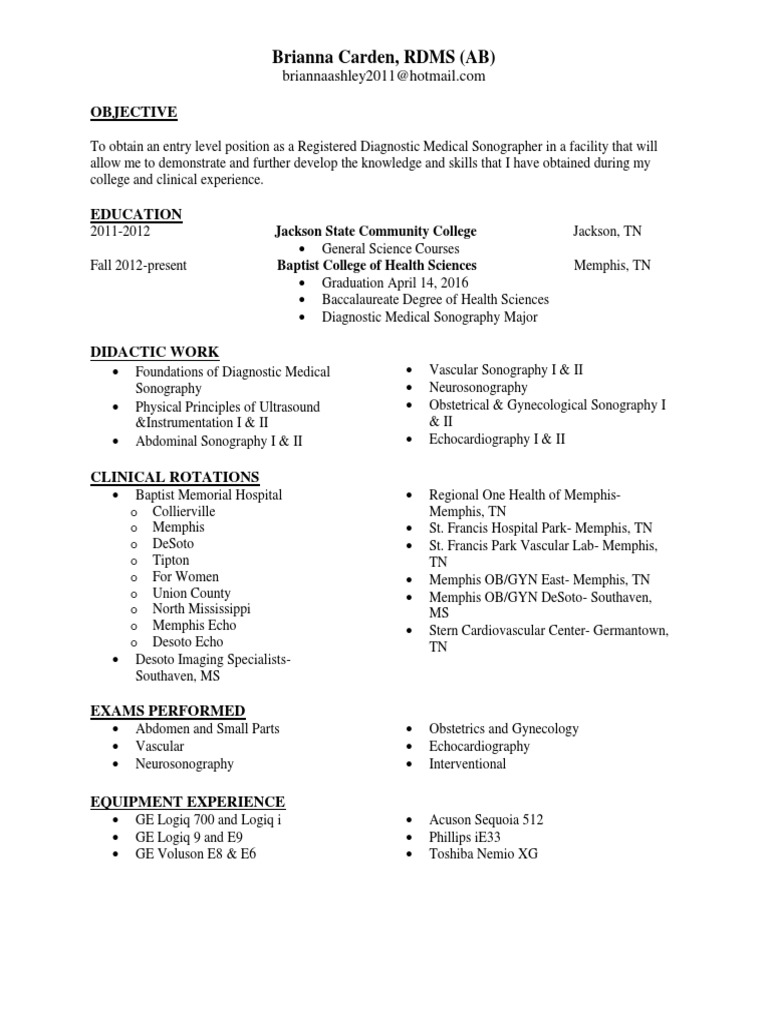 Brianna Carden Resume For Portfolio Pdf Medical Ultrasound