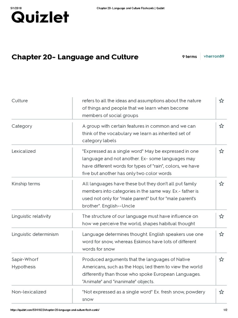 Chapter 20 Language And Culture Flashcards Quizlet Word