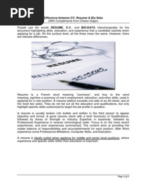 Difference Between Cv Resume And Bio Data