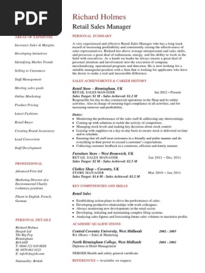 Retail Sales Manager Resume Pdf Retail Sales Free 30 Day