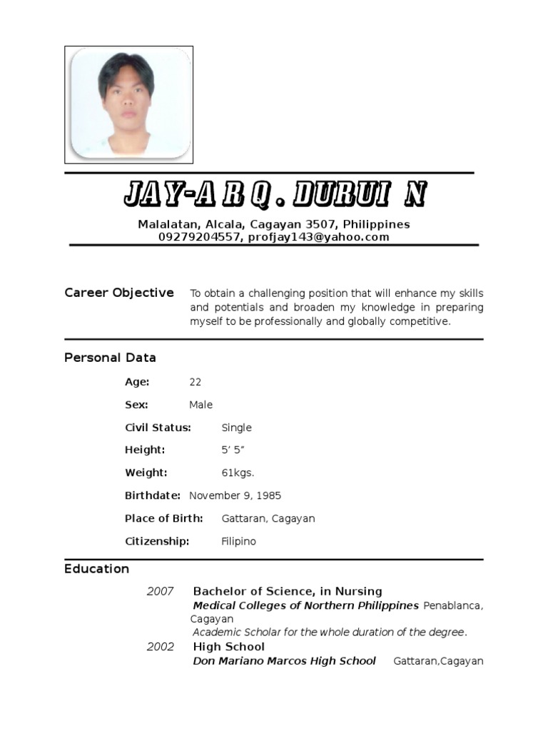 Sample Resume Format Jobsearch Philippines