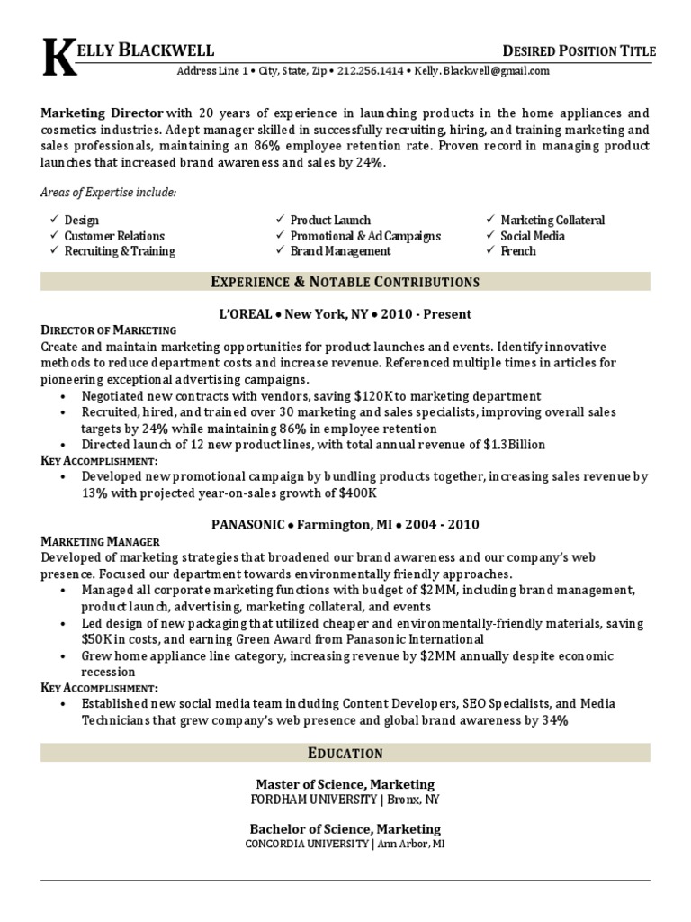 Professional Resume Template B W Marketing Sales