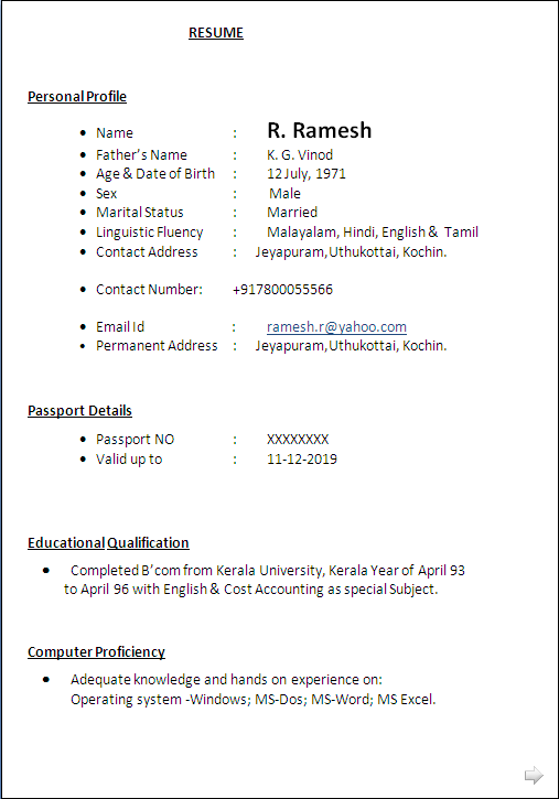 Resume Blog Co Sample Of Cv A Commerce Graduate Having 20 Years
