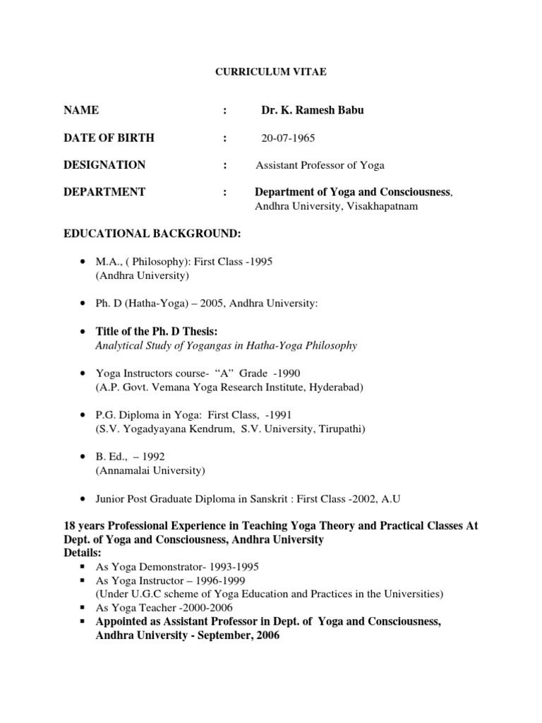 Sample Resume For Yoga Teacher Professional Cv Galway